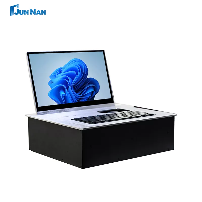 Guangzhou Junan je profesionalni proizvajalec preklopnih zaslonov za konferenčne mize za učinkovita srečanja na Kitajskem. Preklopni zaslon konferenčne mize se večinoma uporablja v vodilni konferenčni mizi na visoki ravni, preklopni zaslon konferenčne mize ima vgrajeno visoko zmogljivo funkcijo na dotik, flip flop krmili AC motor, da se obrne, da se zagotovi stabilno delovanje. Preklopni zaslon konferenčne mize je vrsta opreme, ki se uporablja v konferenčnih sobah, predavalnicah in na drugih mestih, lahko skrije monitor v notranjost konferenčne mize, ko ga morate uporabiti, z električnim ali ročnim upravljanjem, da obrnete monitor na namizje, in ga nato obrnite navzdol, ko ni v uporabi, da igra vlogo prahu, proti kraji in ohranja gladko in lepo namizje. Z motoriziranim upravljanjem lahko plavutka zlahka obrne monitor v pravi kot za najboljši učinek kota gledanja. Lahko je opremljen z mikrofonom, eno tipko flip, nastavitev spredaj in zadaj, s funkcijo proti ščipanju, varna in brezskrbna, skrita vgrajena namestitev je zelo lepa.